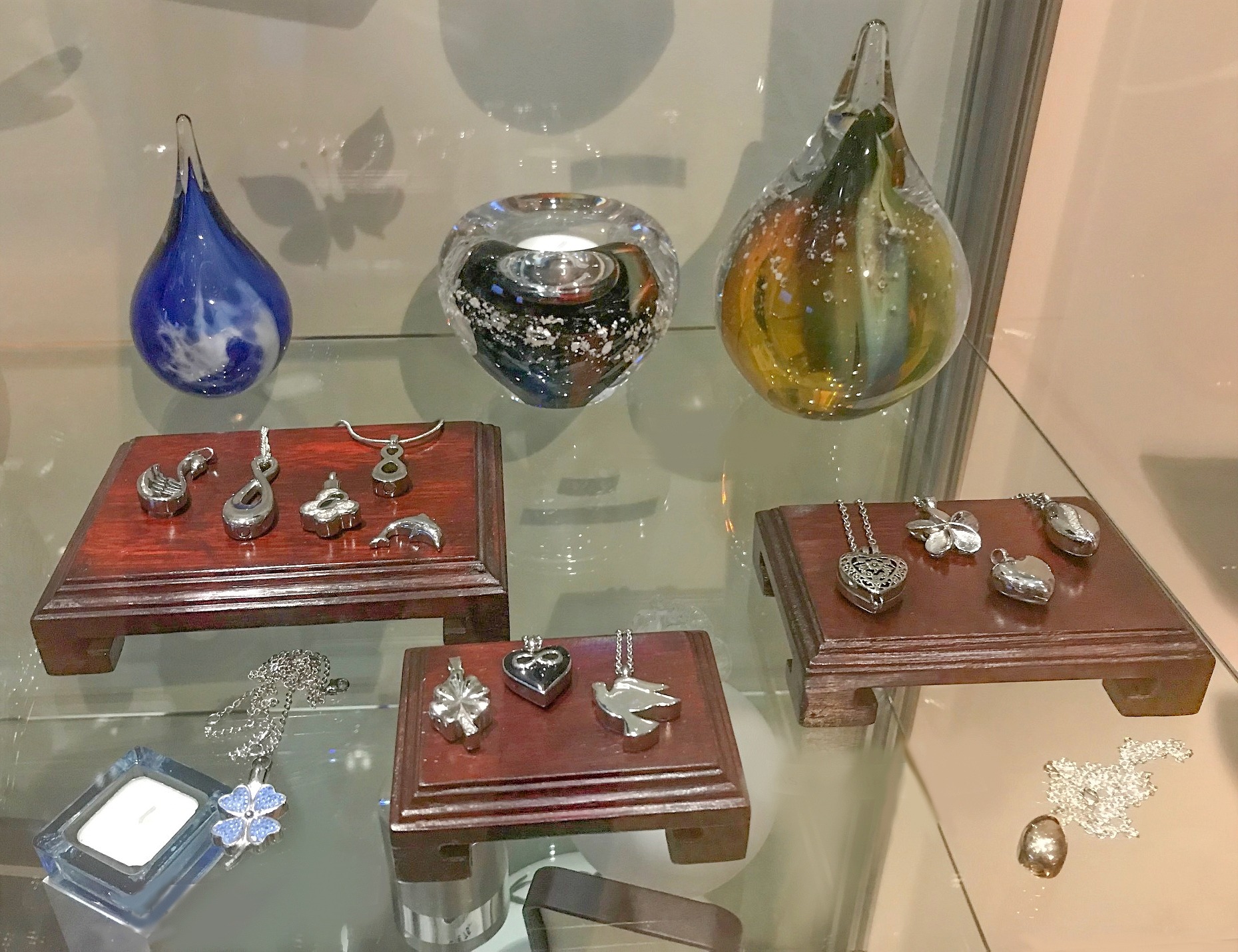 Bij Uitvaartverzorging Donker snappen wij het heel goed als u na de crematie van uw dierbare graag wat as wilt bewaren. U wilt immers het liefst een blijvende herinnering. Daarvoor zijn verschillende mogelijkheden. Allereerst verschillende soorten urnen, maar ook mooie as-sieraden en andere herinneringsobjecten, van glas bijvoorbeeld. Wij hebben een kleine toonzaal ingericht waar u in alle rust een keus kunt maken uit wel 100 soorten.